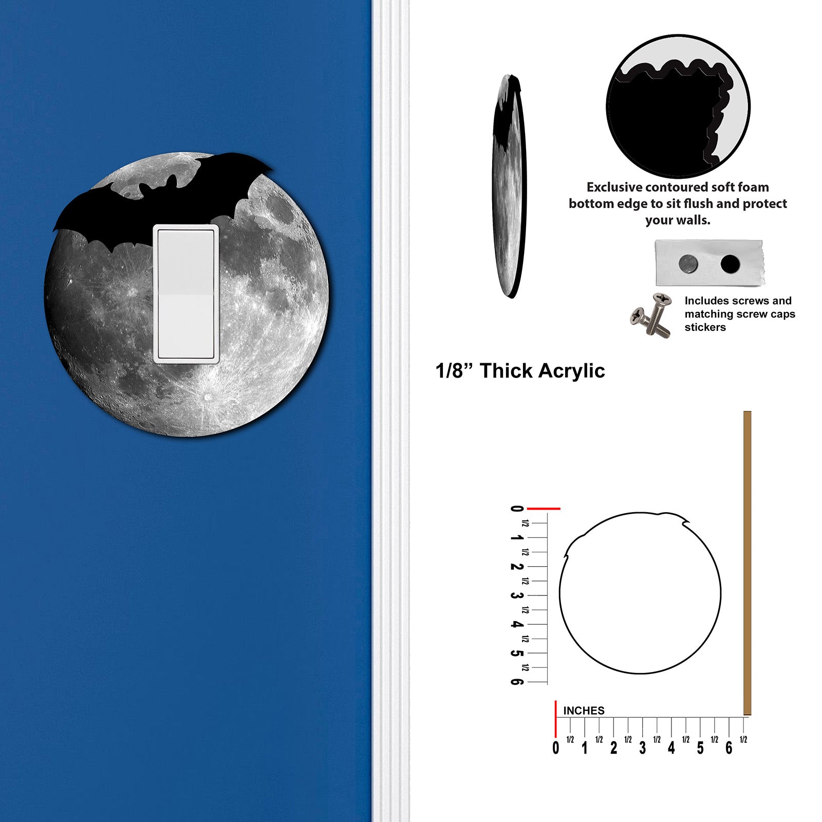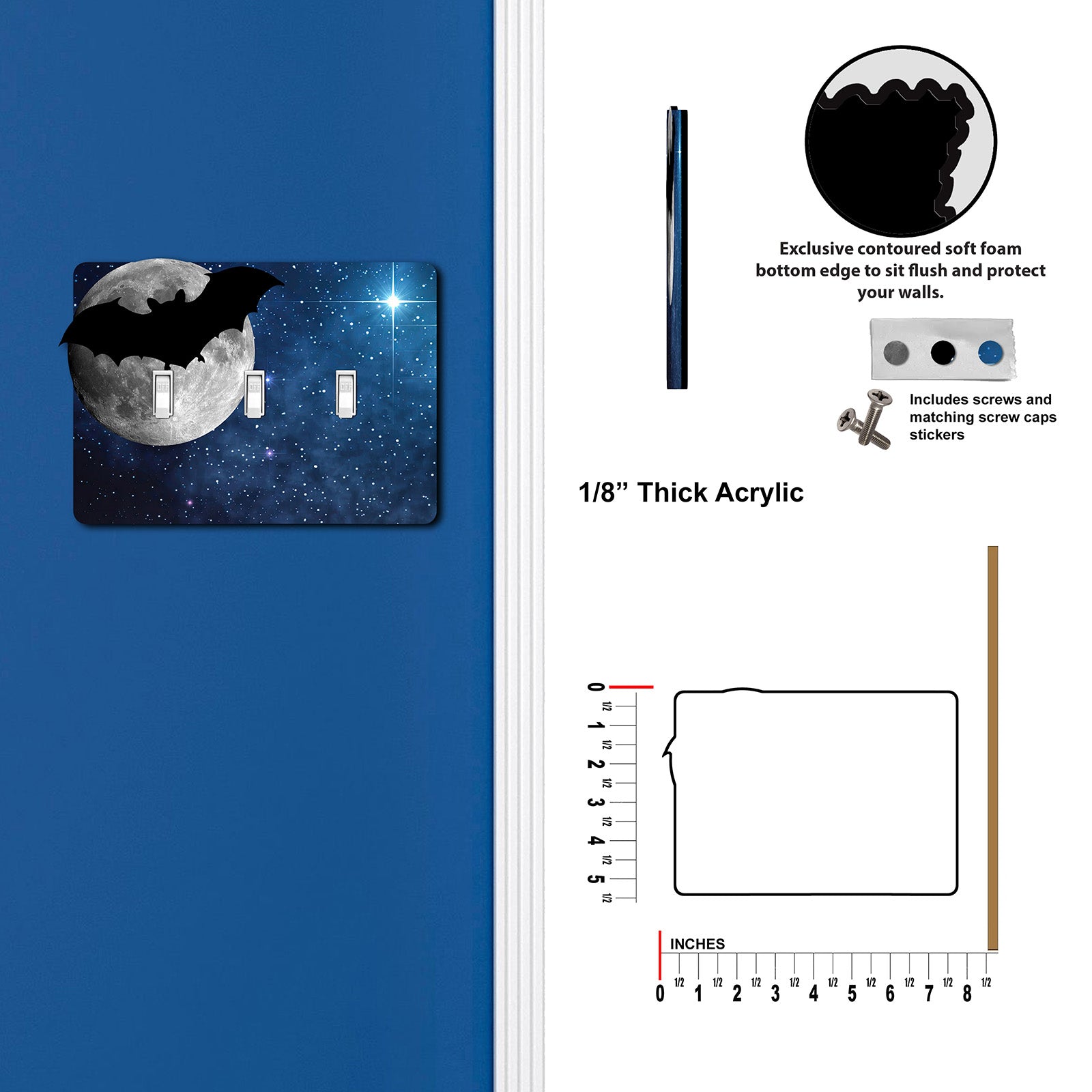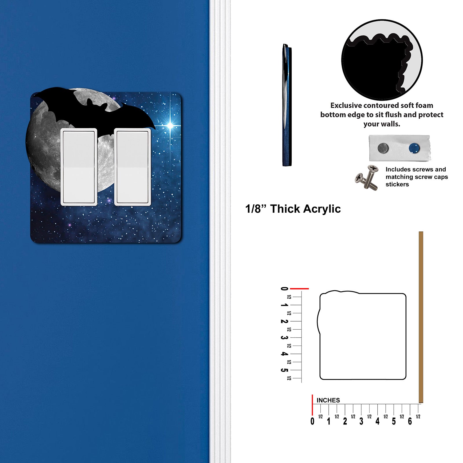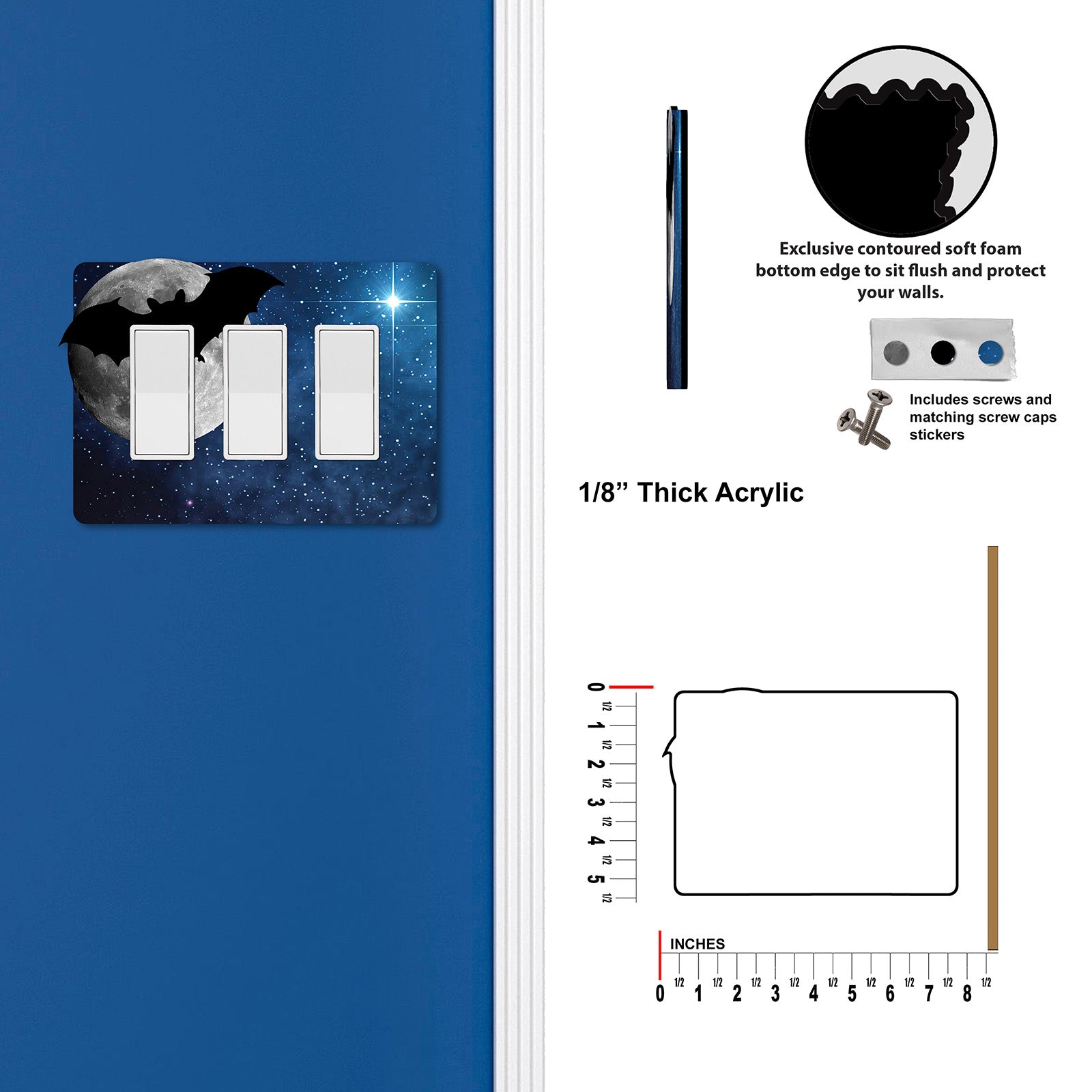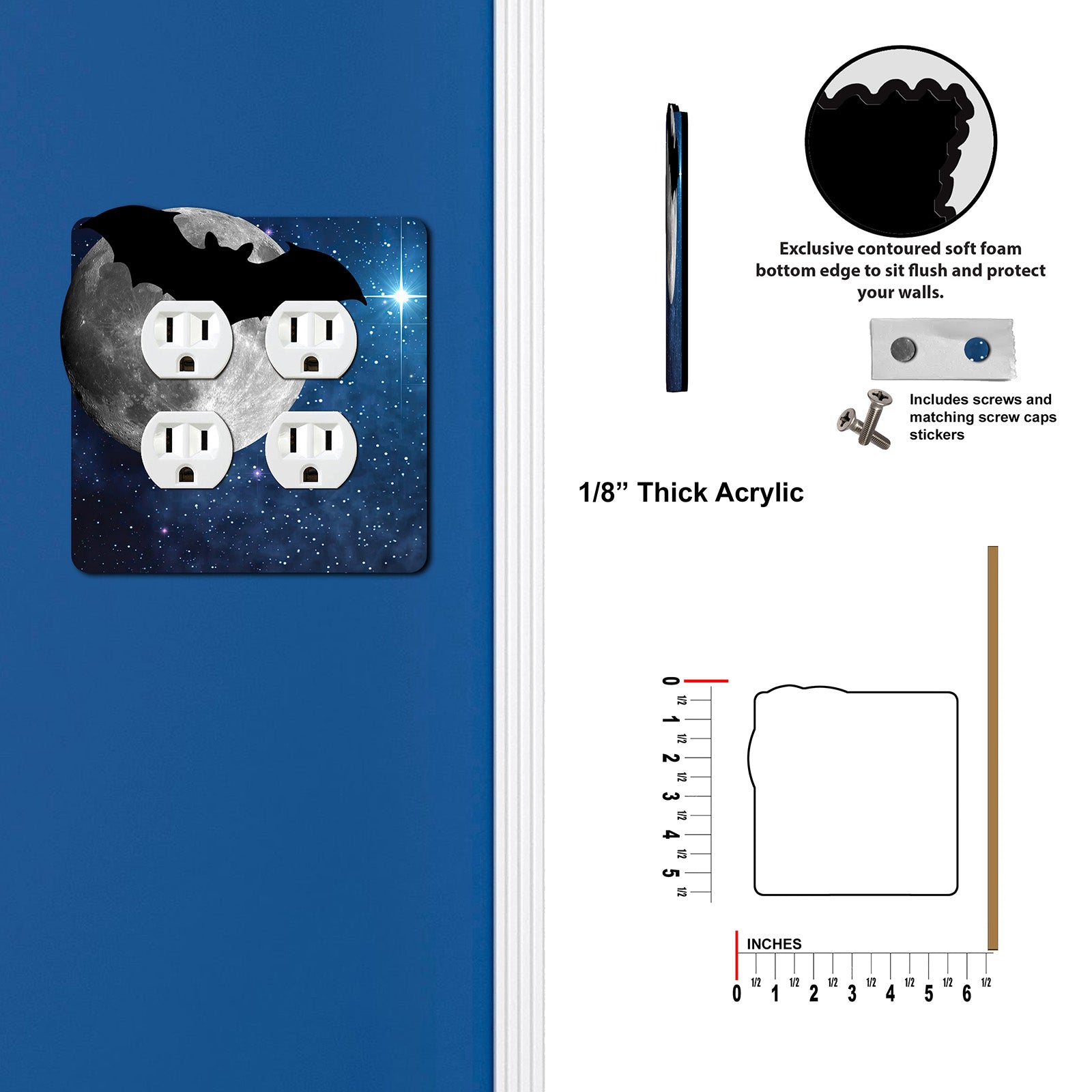 OFF THE WALL PLATES are available for standard switches, outlets and paddle designs as well as blank covers in single, double and triple gang styles (# of switch/outlet slots). Each cover is made of 1/8” laser cut acrylic and features an exclusive 3mm soft foam base that sits flush to the wall and helps protect against scratches or damage.