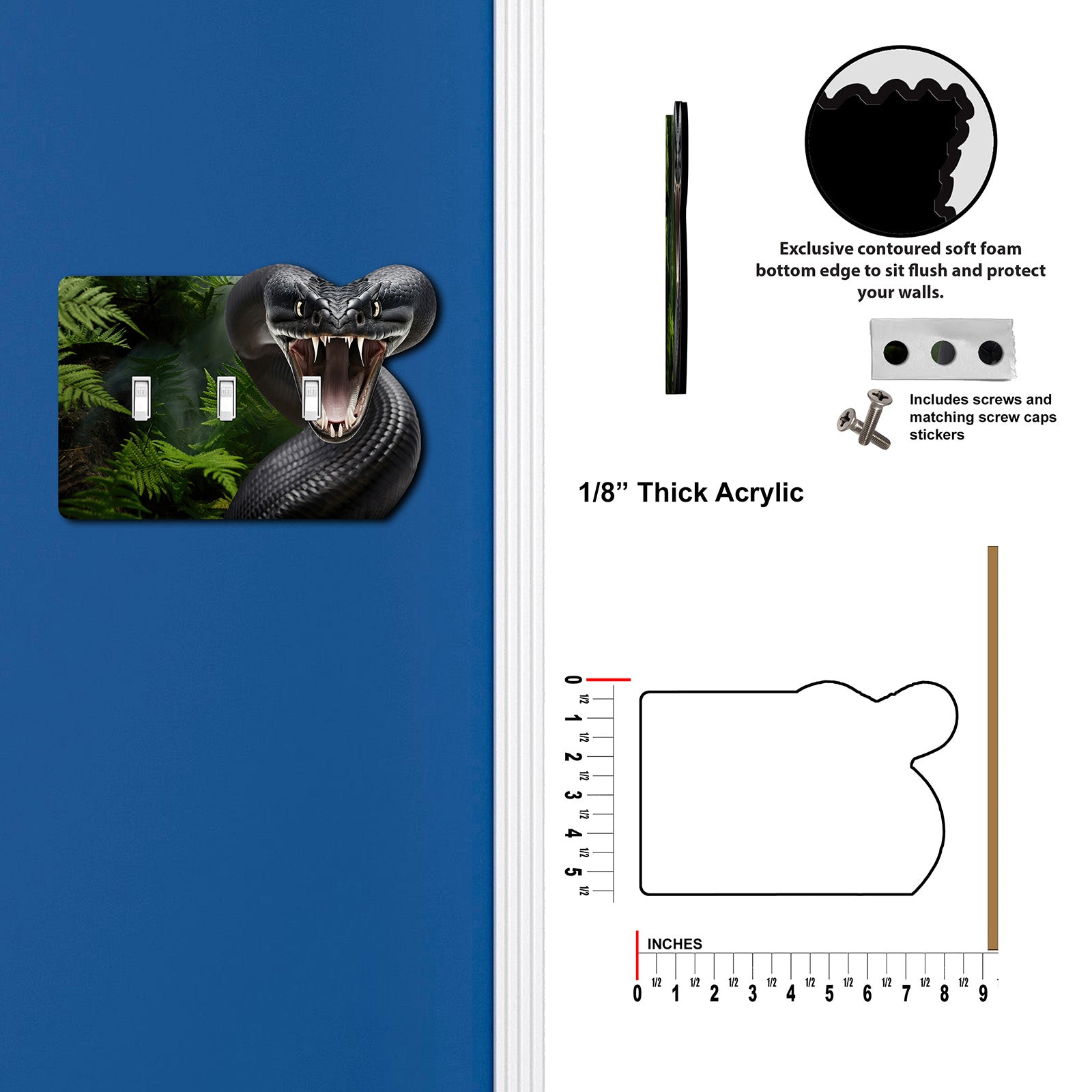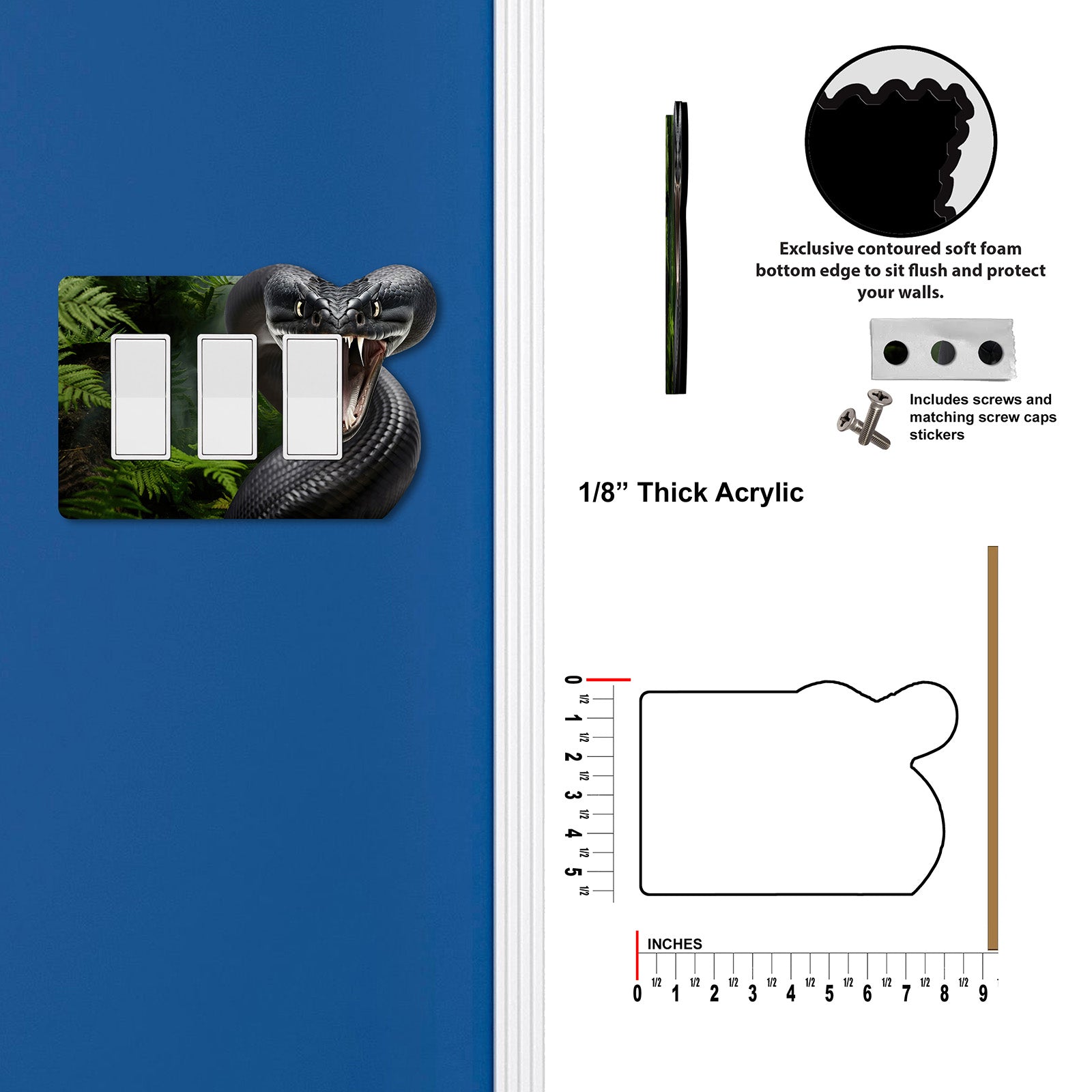 OFF THE WALL PLATES are available for standard switches, outlets and paddle designs as well as blank covers in single, double and triple gang styles (# of switch/outlet slots). Each cover is made of 1/8” laser cut acrylic and features an exclusive 3mm soft foam base that sits flush to the wall and helps protect against scratches or damage.