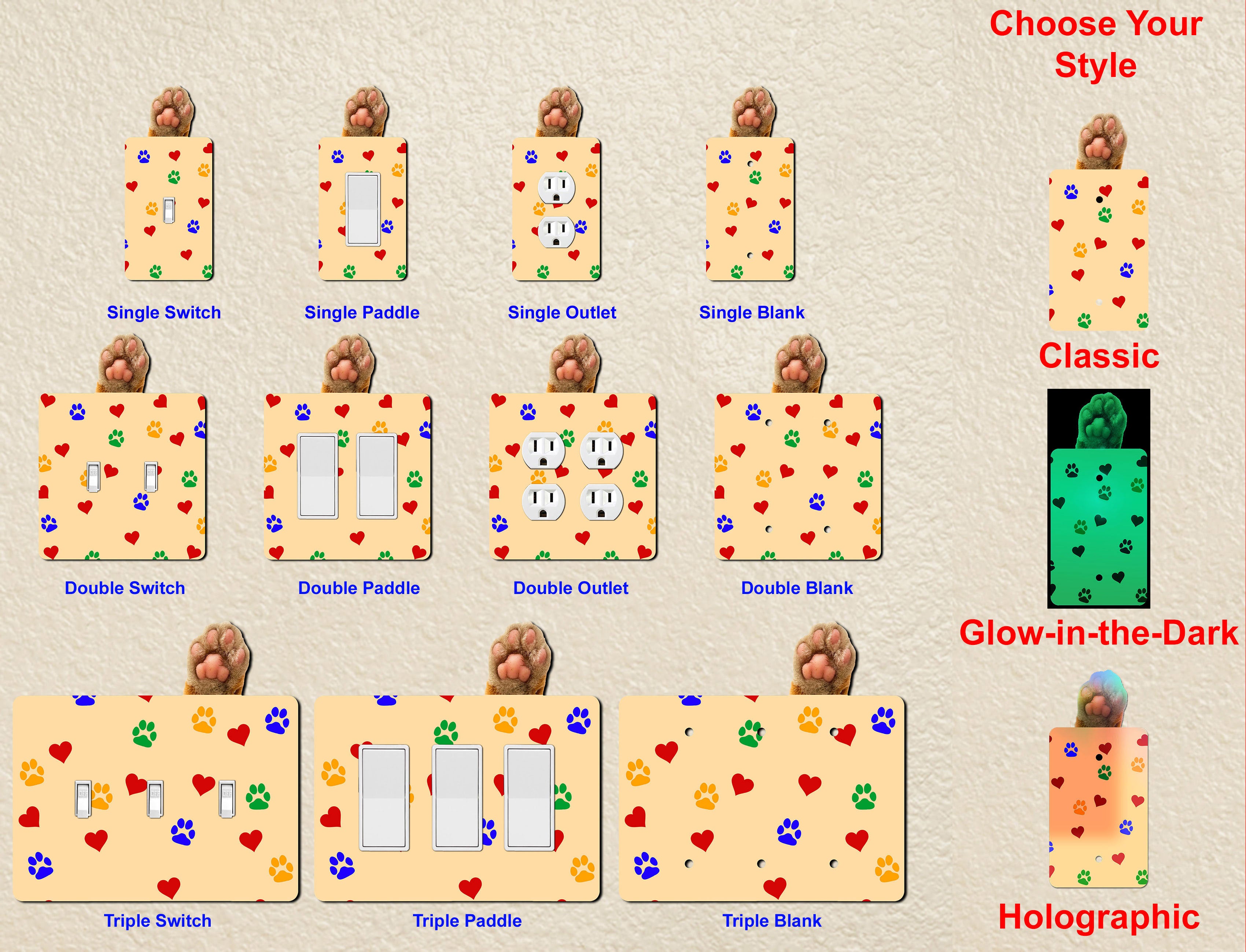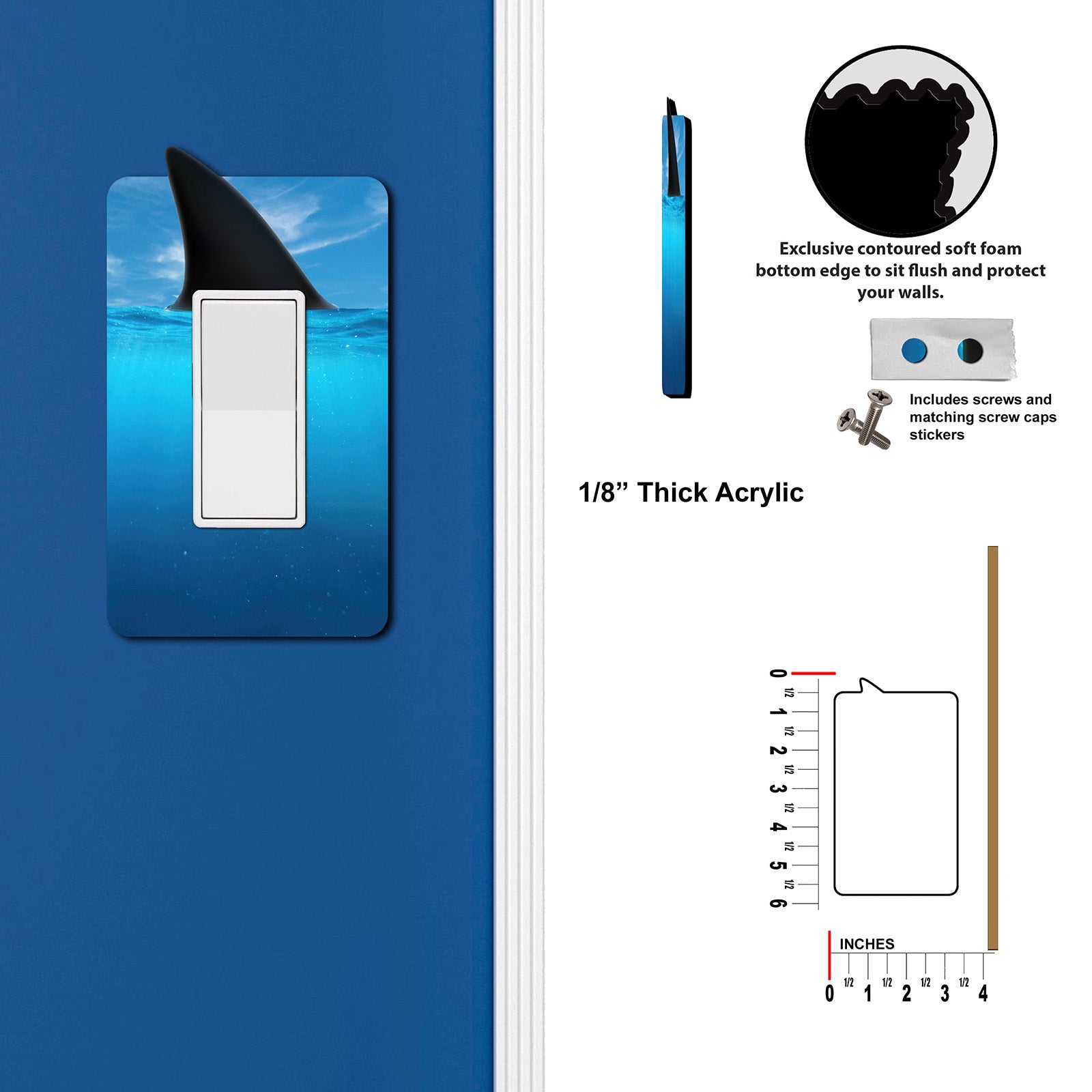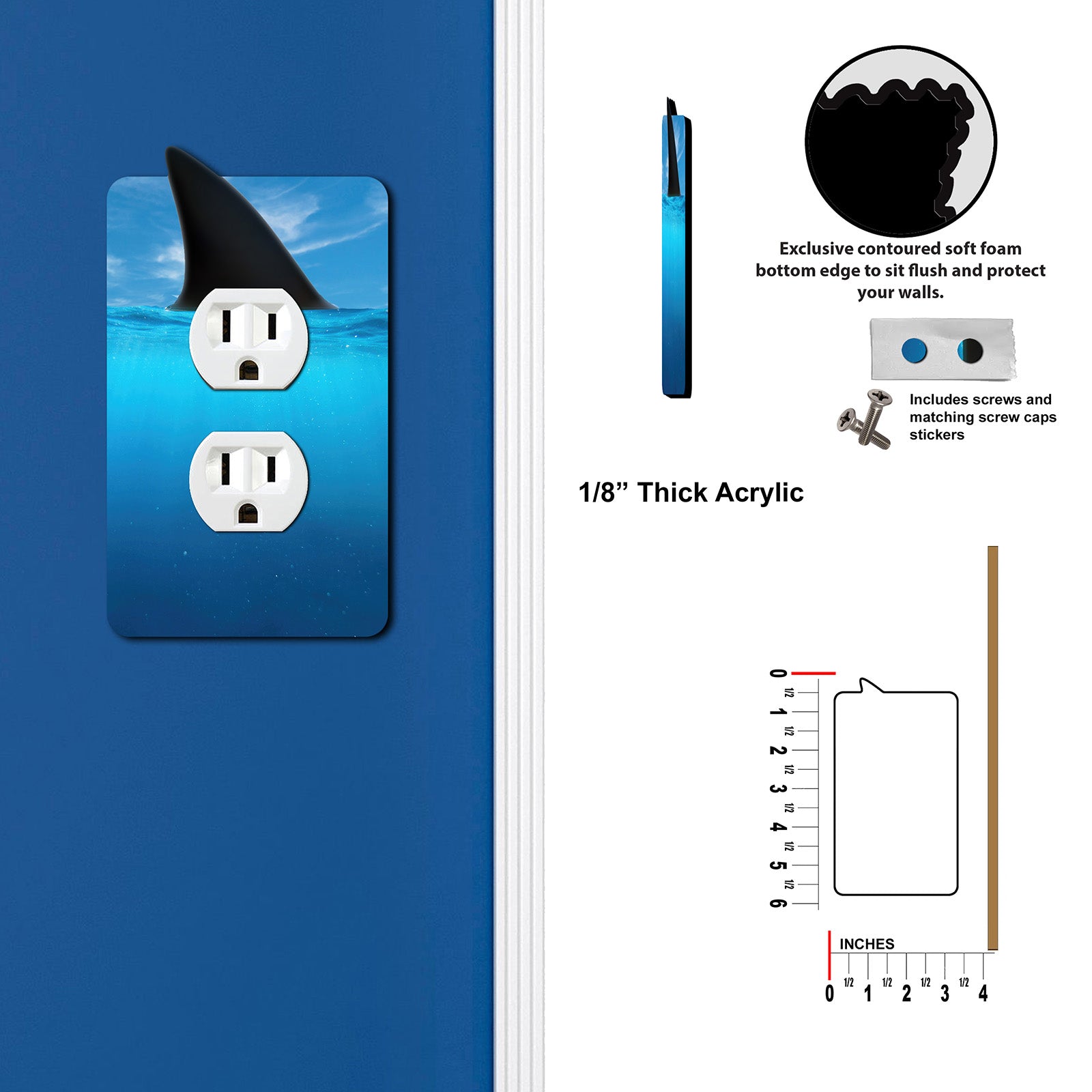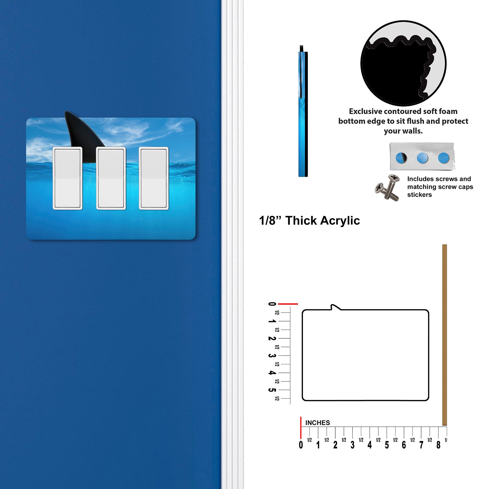 OFF THE WALL PLATES are available for standard switches, outlets and paddle designs as well as blank covers in single, double and triple gang styles (# of switch/outlet slots). Each cover is made of 1/8” laser cut acrylic and features an exclusive 3mm soft foam base that sits flush to the wall and helps protect against scratches or damage.