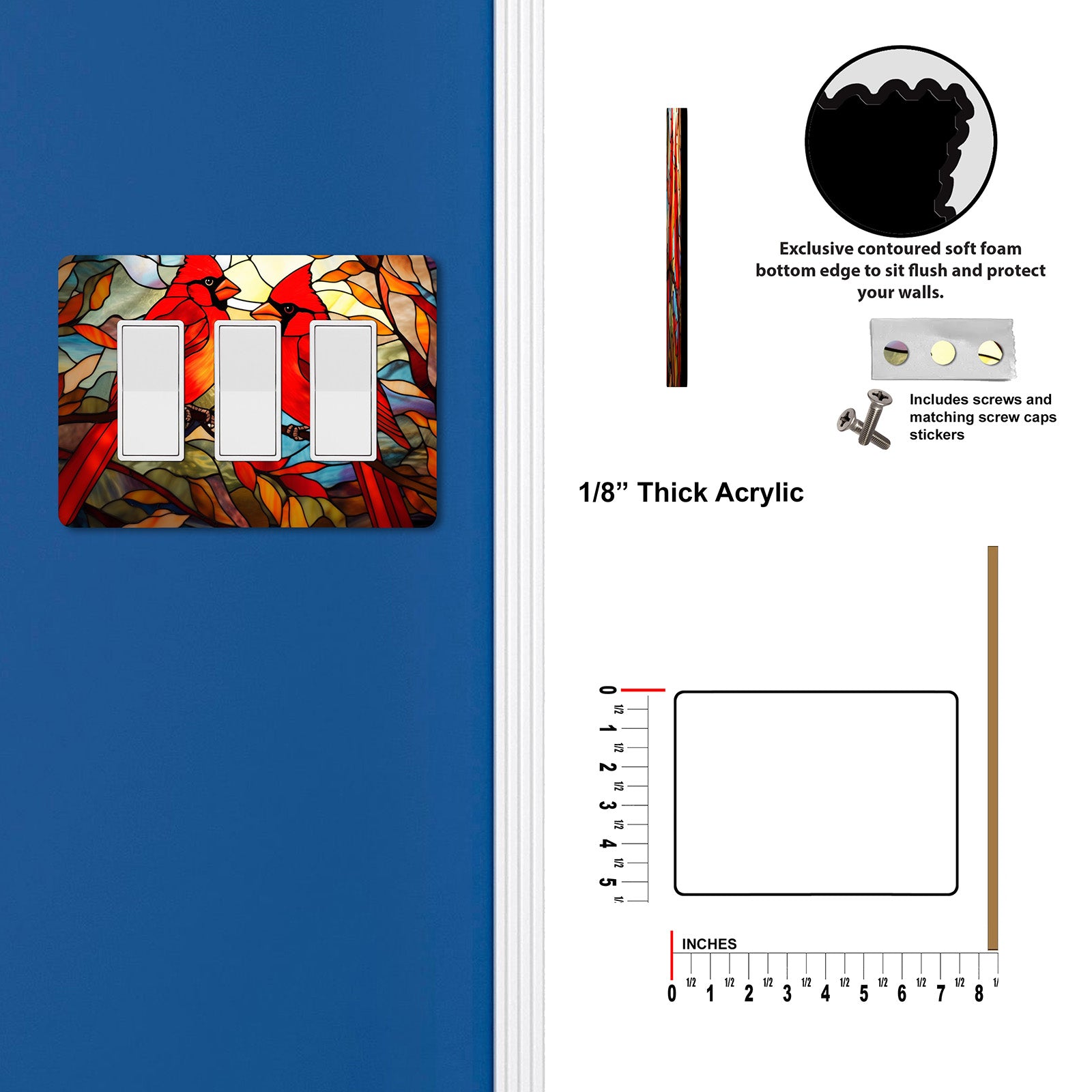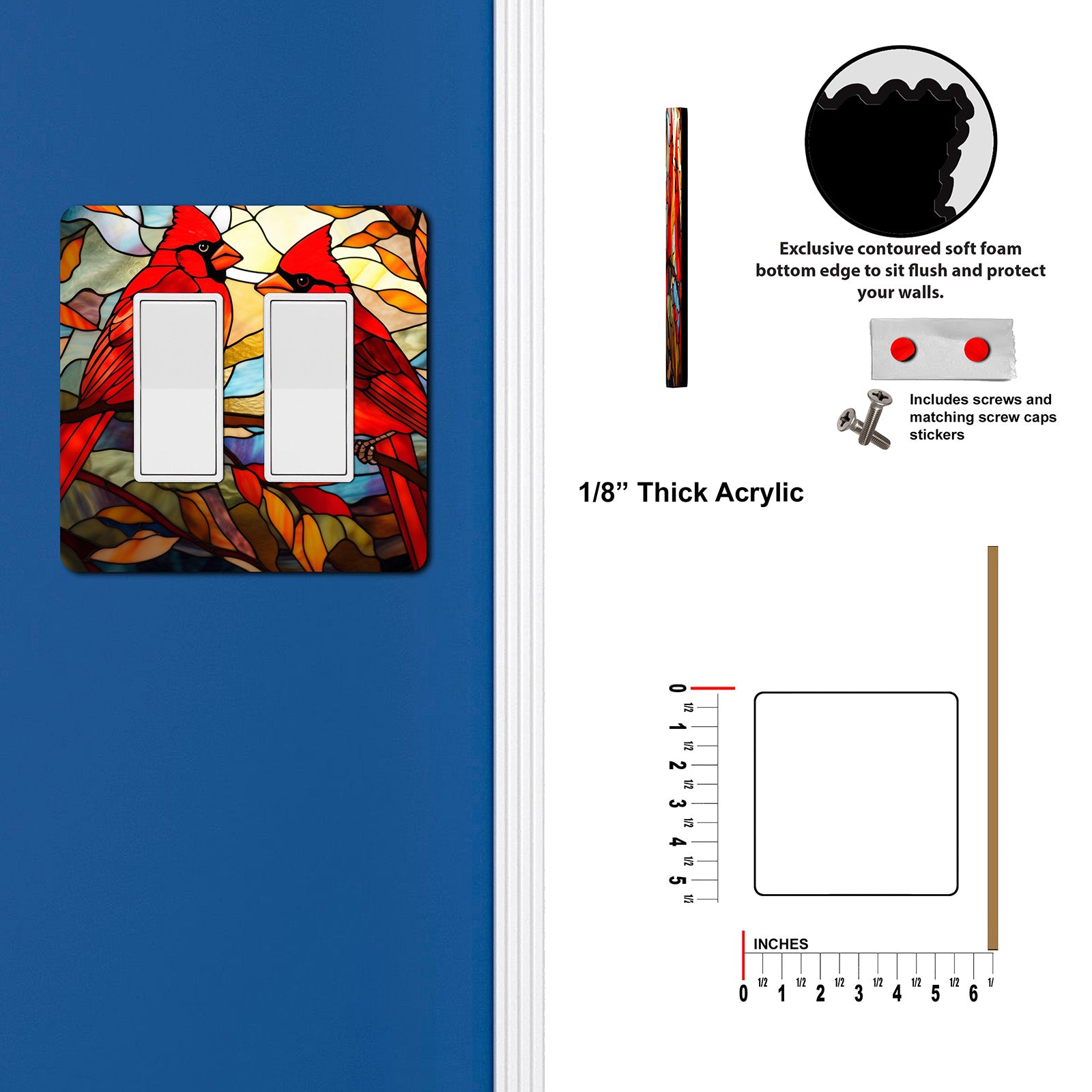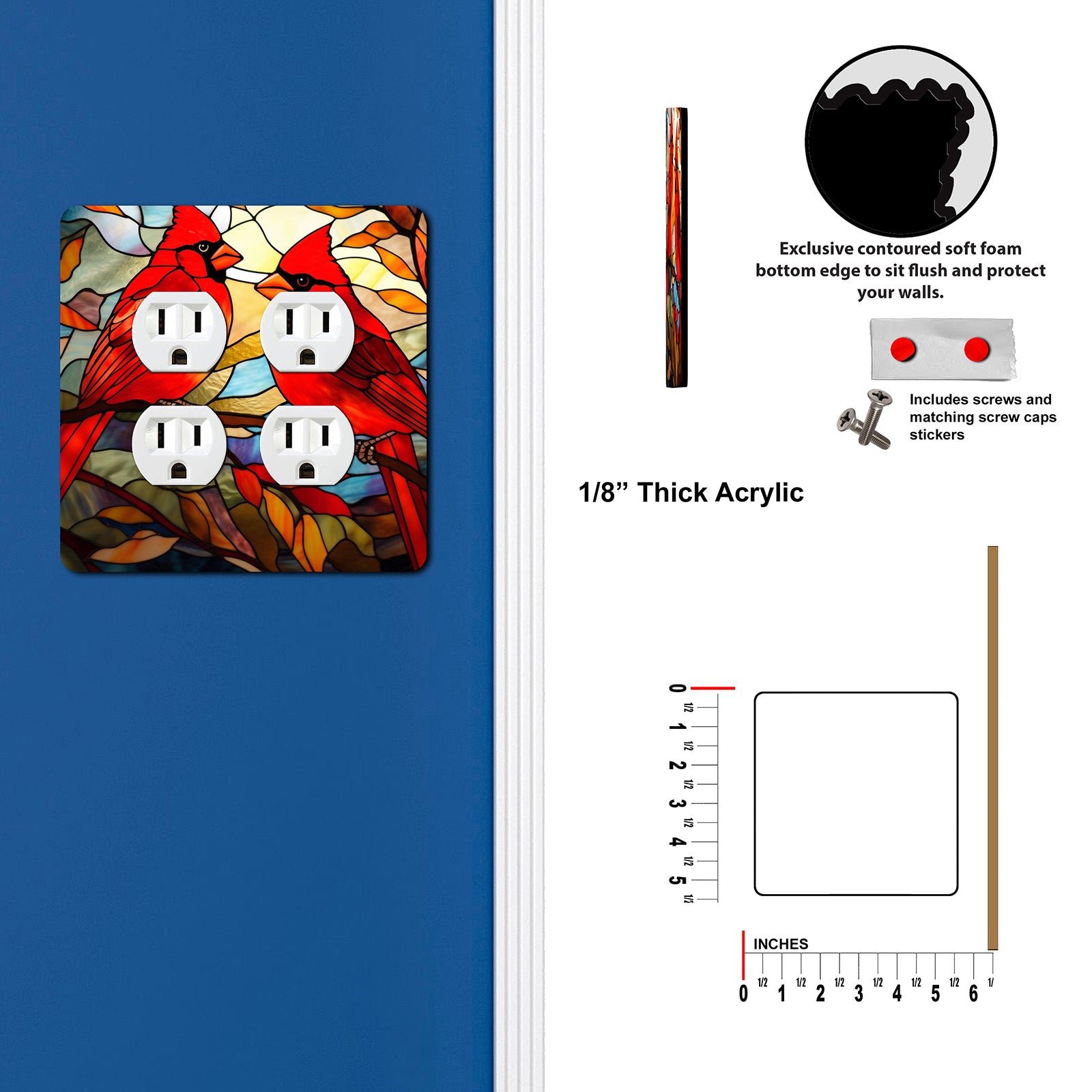 OFF THE WALL PLATES are available for standard switches, outlets and paddle designs as well as blank covers in single, double and triple gang styles (# of switch/outlet slots). Each cover is made of 1/8” laser cut acrylic and features an exclusive 3mm soft foam base that sits flush to the wall and helps protect against scratches or damage.