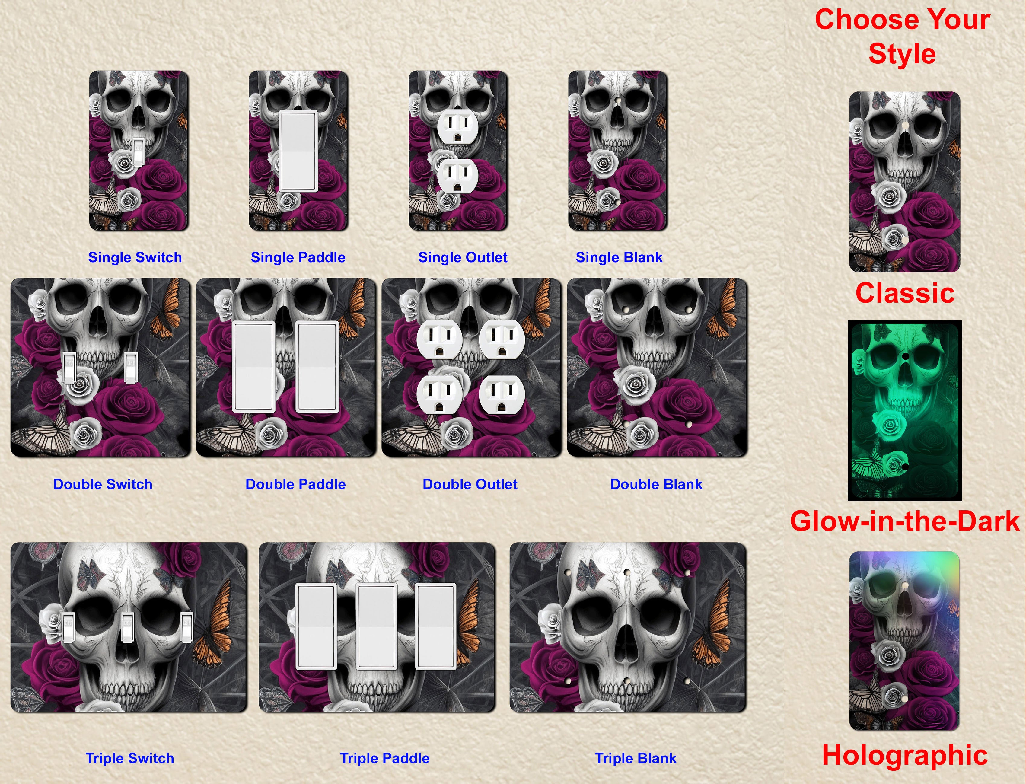 Each Package includes (1) OFF THE WALL PLATE of your choice, ½” mounting screws & matching screw cap cover stickers to complement the design.
