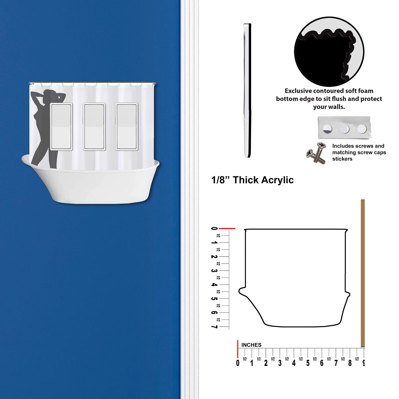Contoured soft foam bottom edge allows the wall plate to sit flush and prevents any damage to your wall.