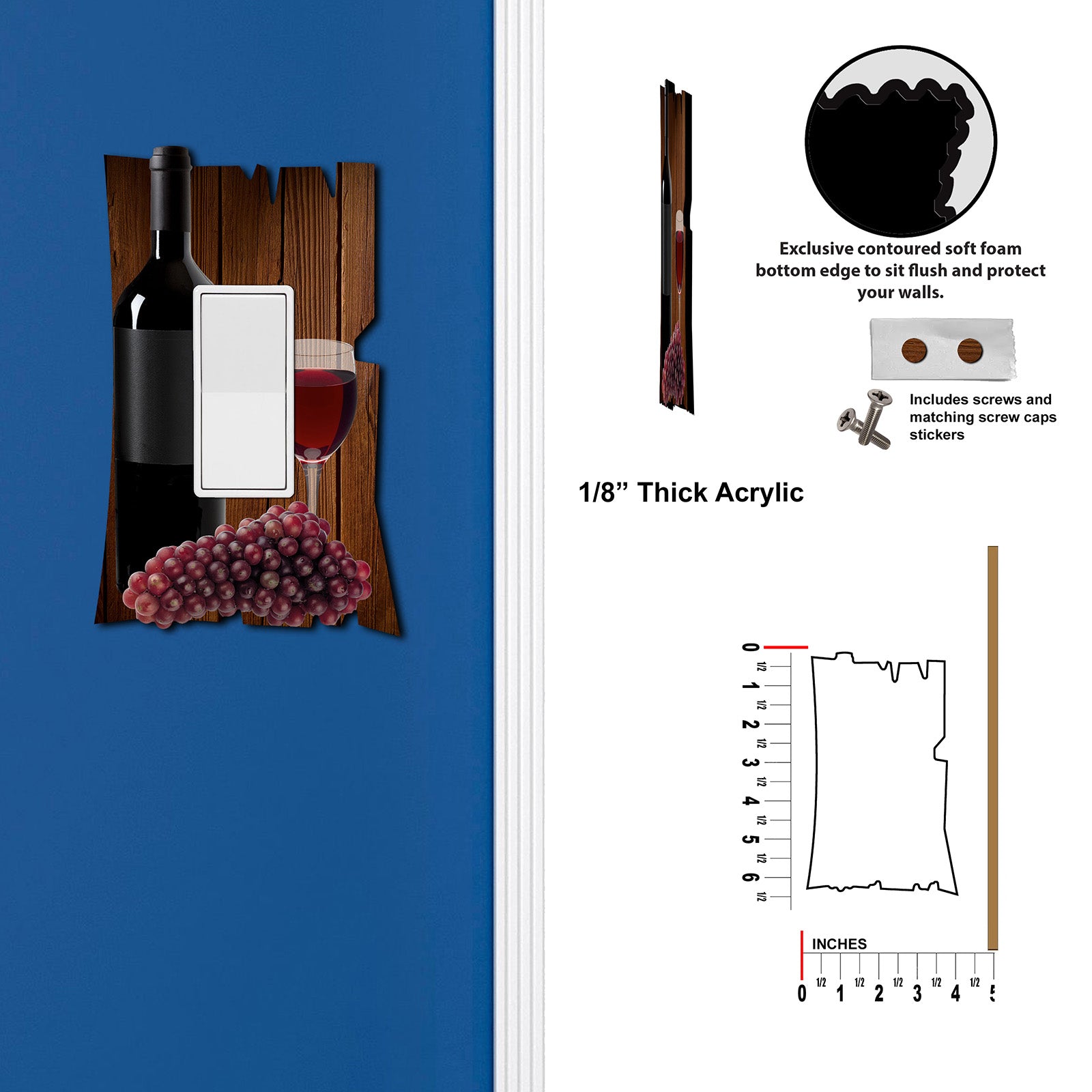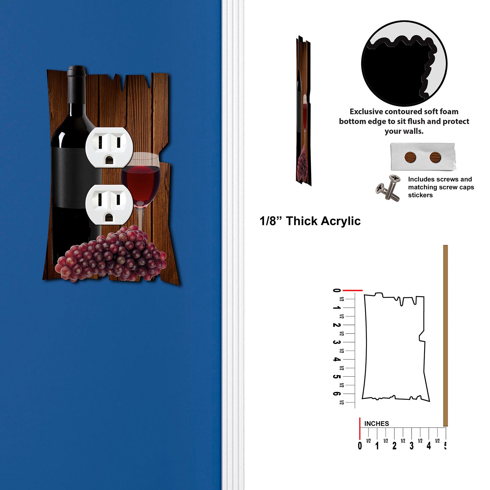 Contoured soft foam bottom edge allows the wall plate to sit flush and prevents any damage to your wall.