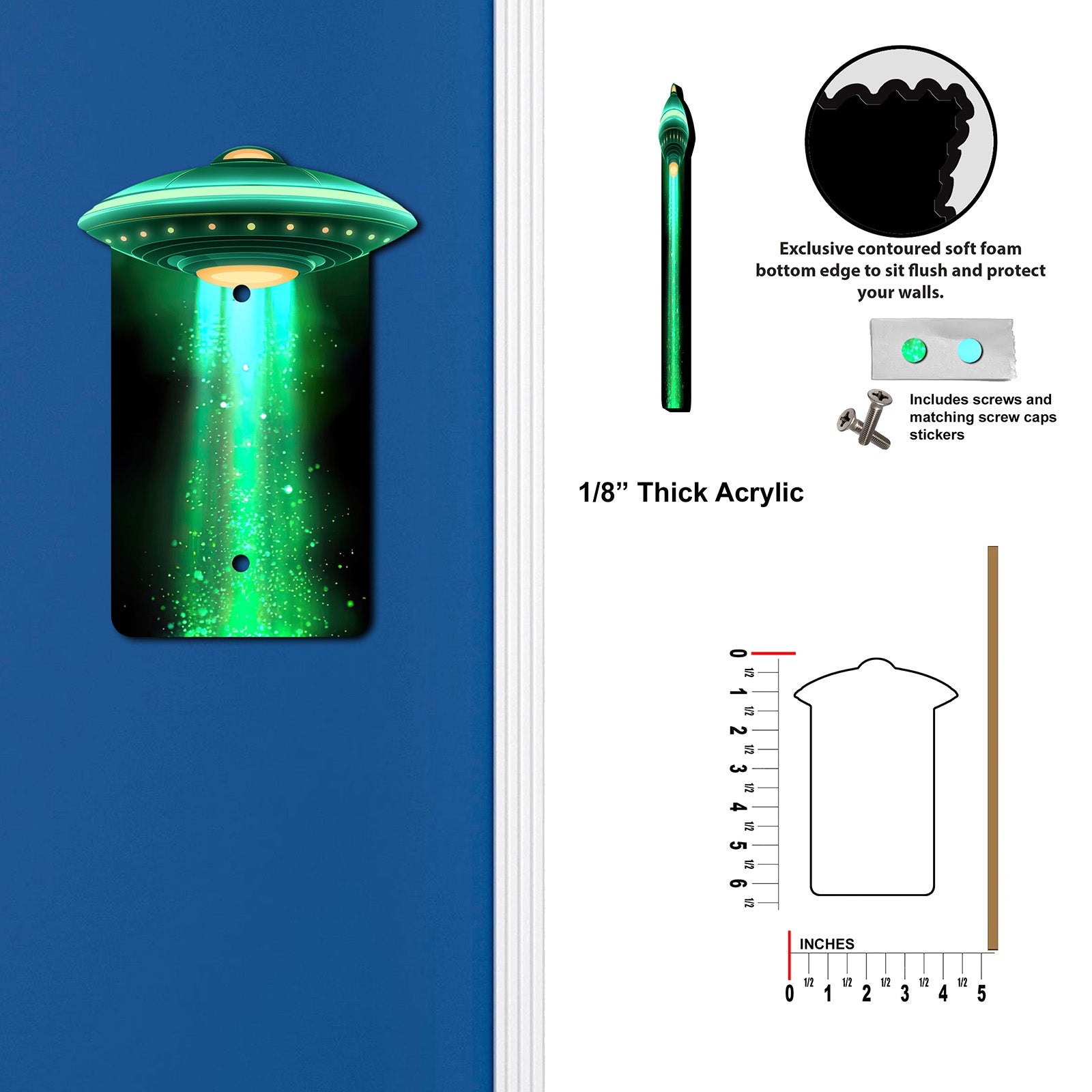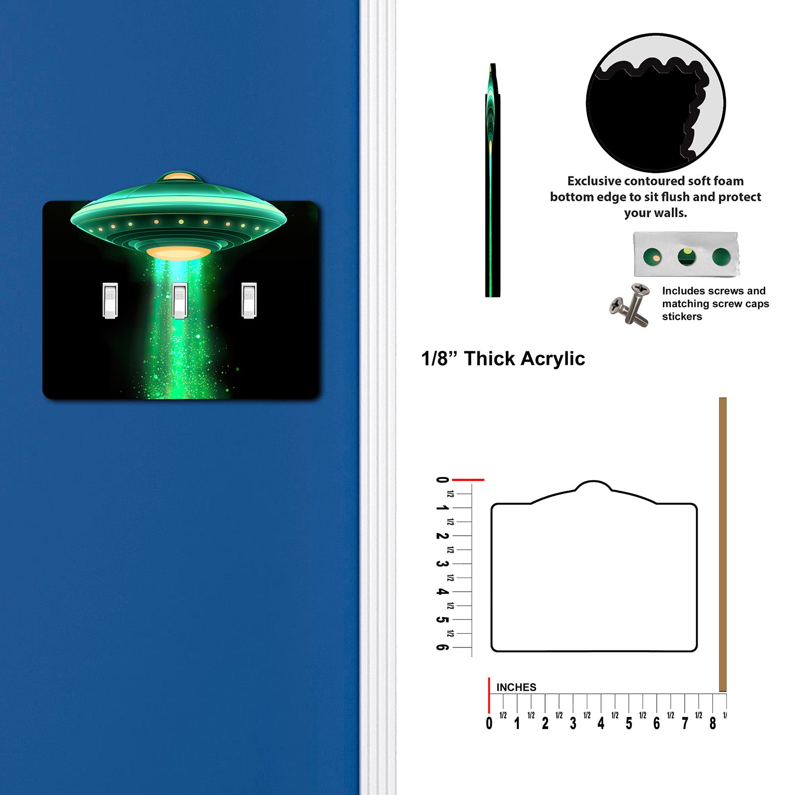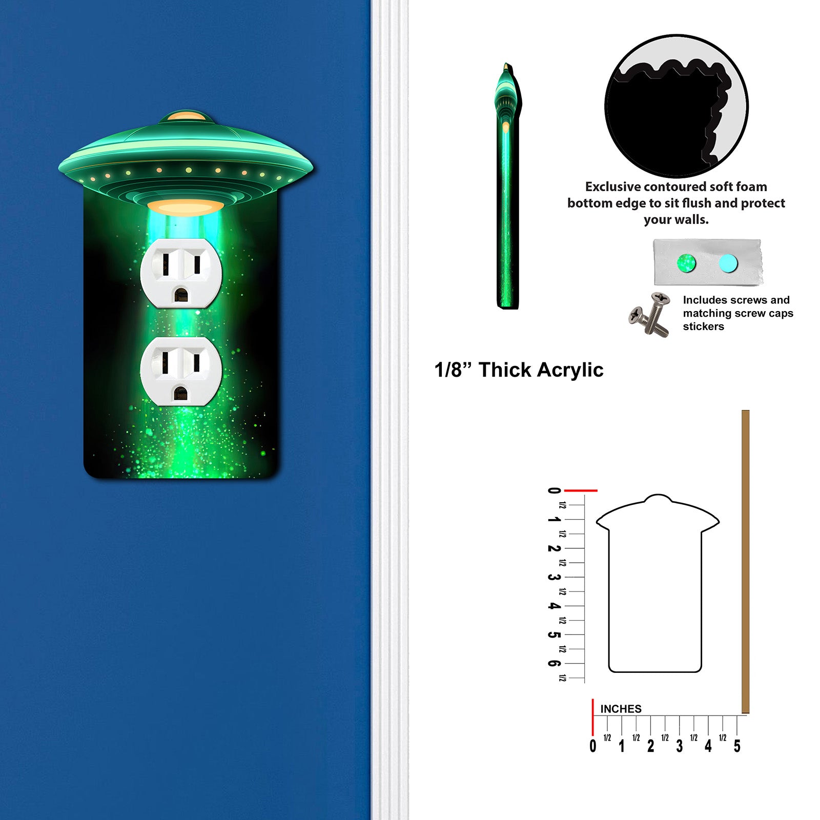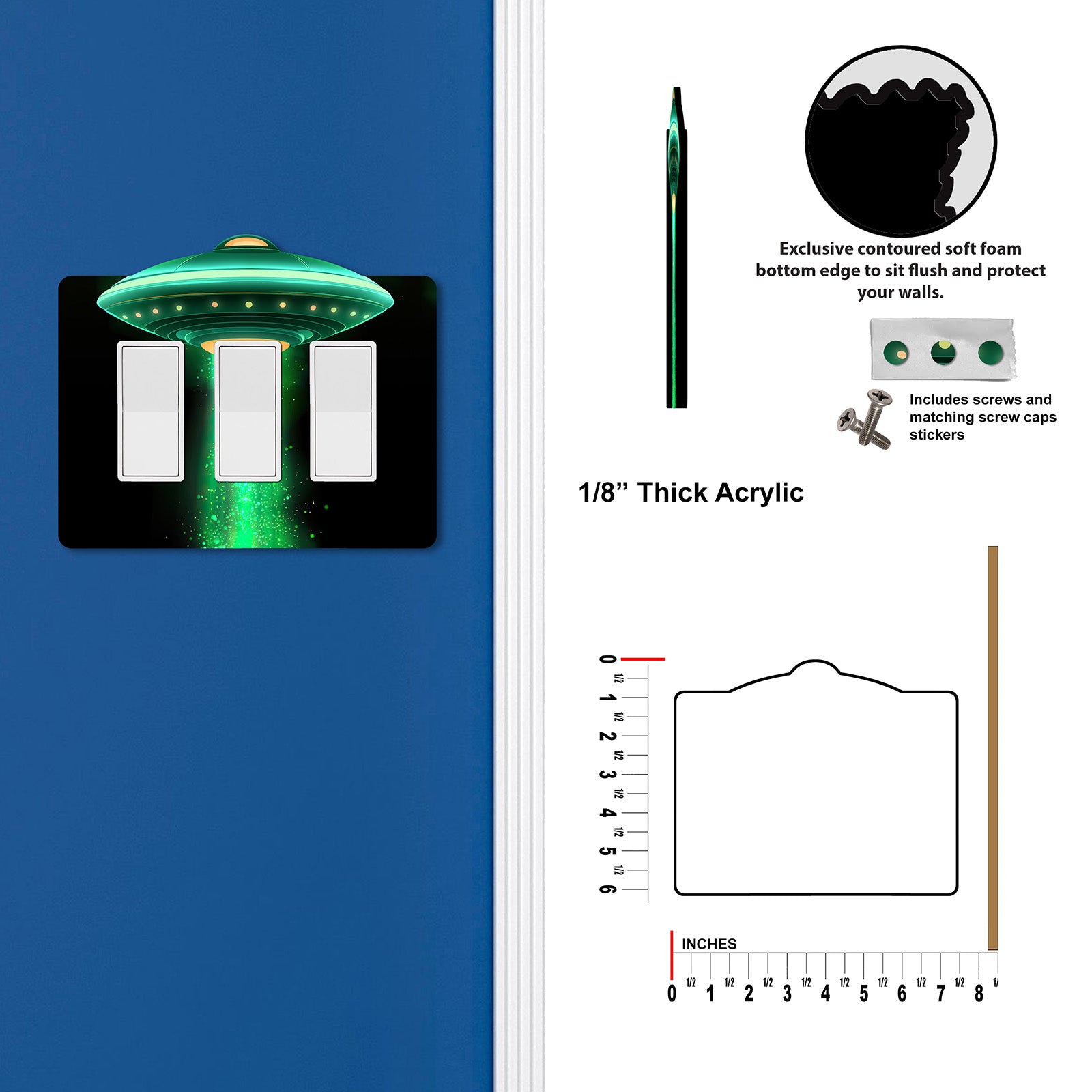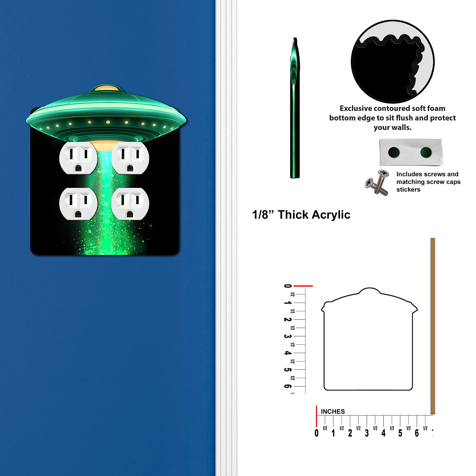 OFF THE WALL PLATES are available for standard switches, outlets and paddle designs as well as blank covers in single, double and triple gang styles (# of switch/outlet slots). Each cover is made of 1/8” laser cut acrylic and features an exclusive 3mm soft foam base that sits flush to the wall and helps protect against scratches or damage.
