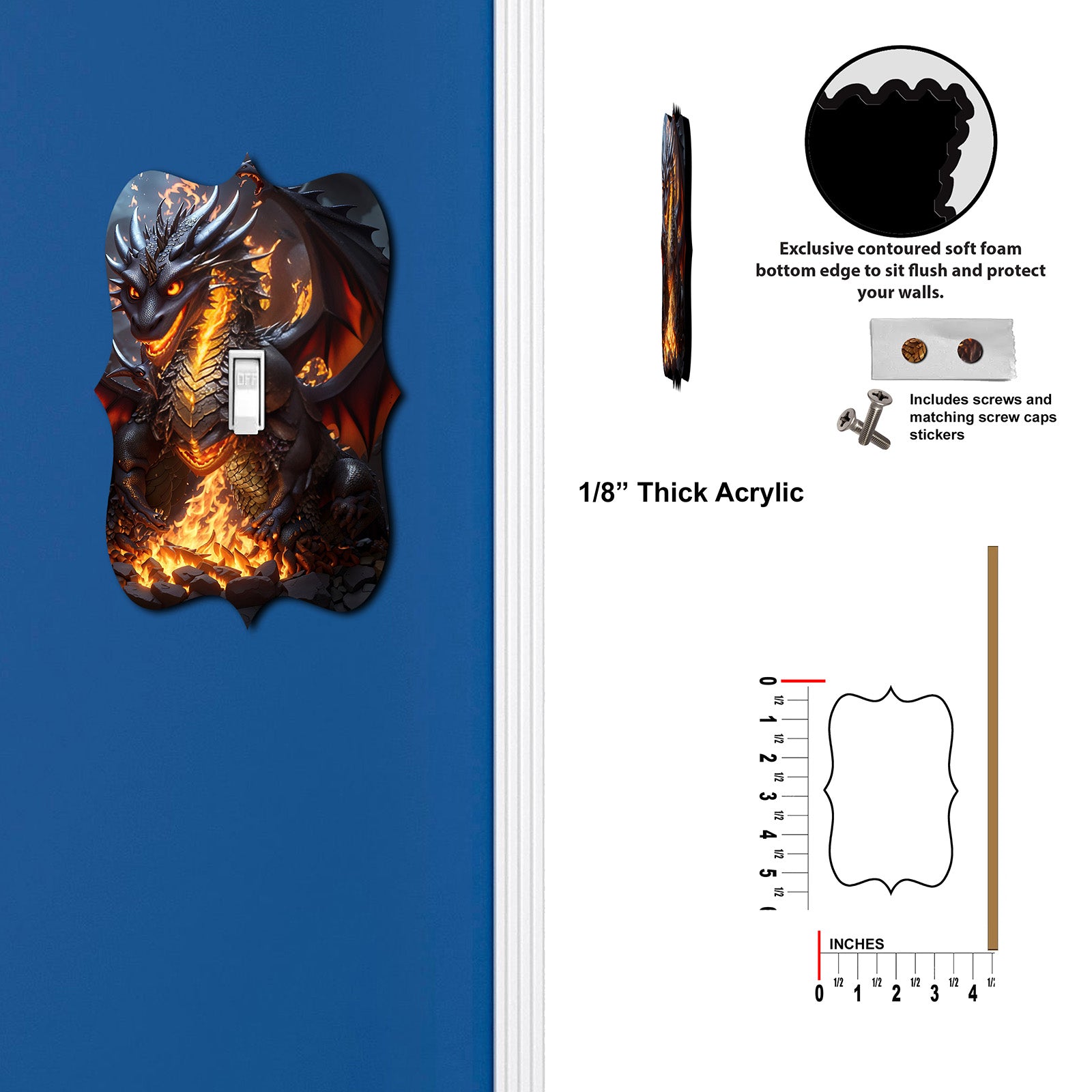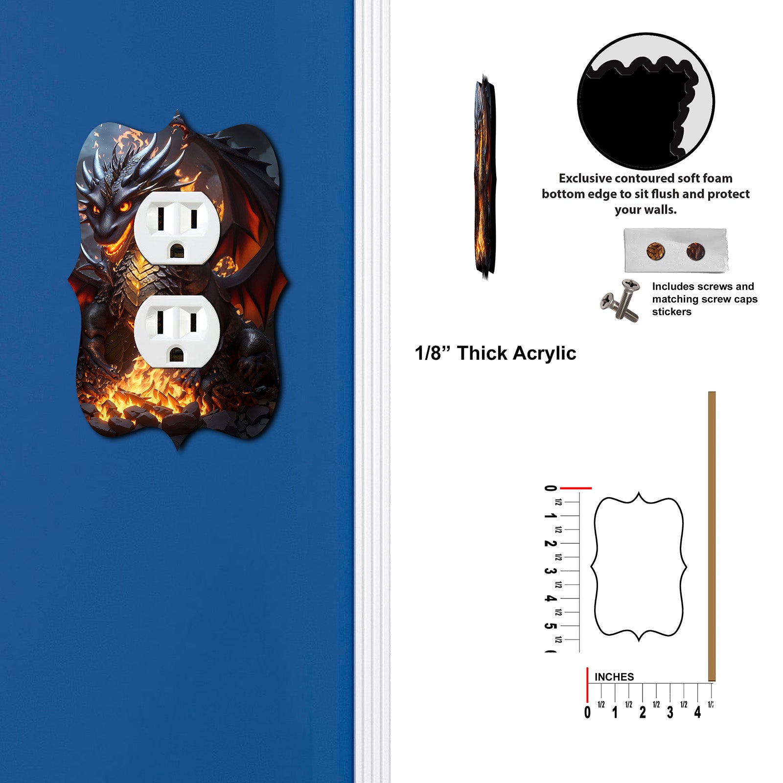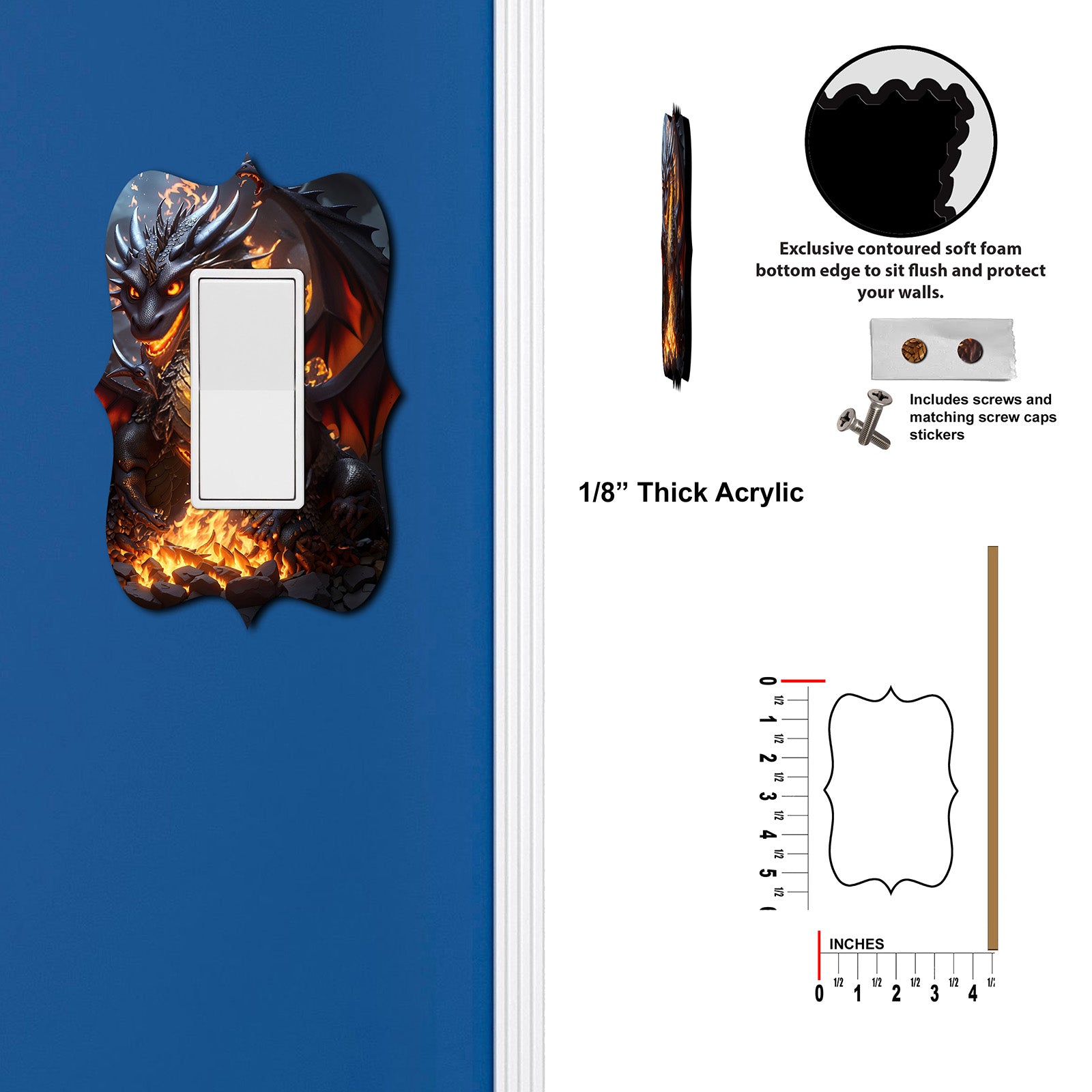 OFF THE WALL PLATES are available for standard switches, outlets and paddle designs as well as blank covers in single, double and triple gang styles (# of switch/outlet slots). Each cover is made of 1/8” laser cut acrylic and features an exclusive 3mm soft foam base that sits flush to the wall and helps protect against scratches or damage.