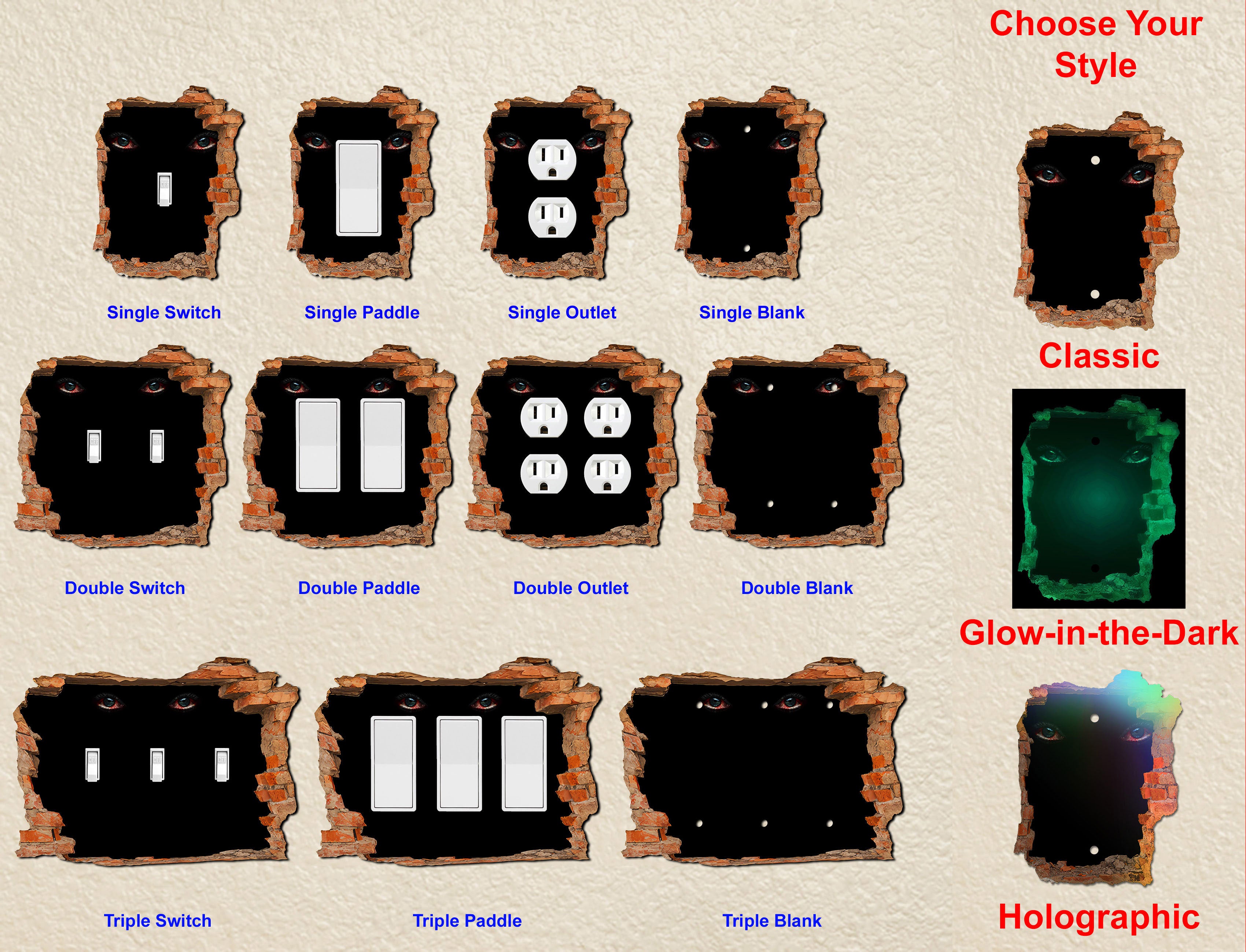 Each Package includes (1) OFF THE WALL PLATE of your choice, ½” mounting screws & matching screw cap cover stickers to complement the design.