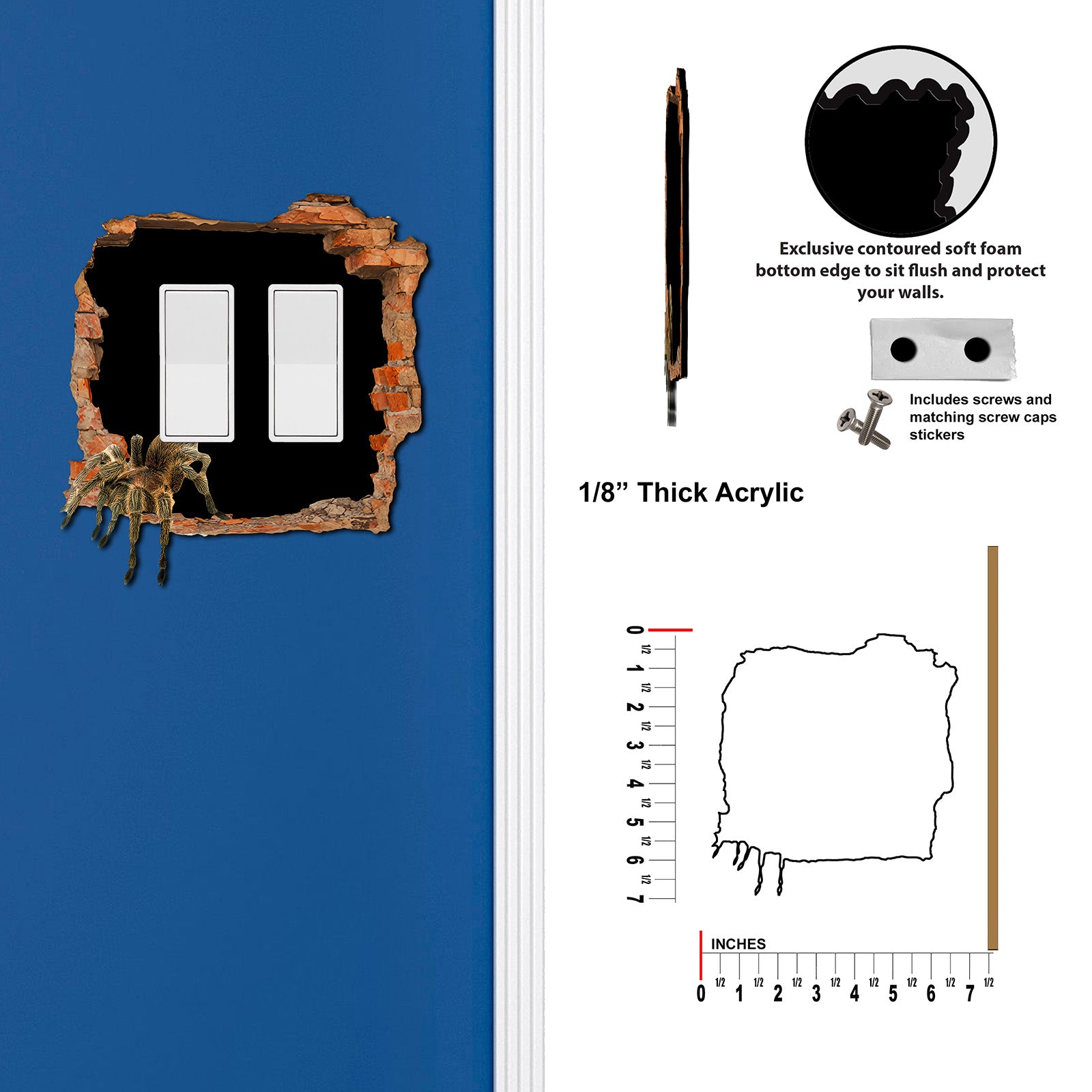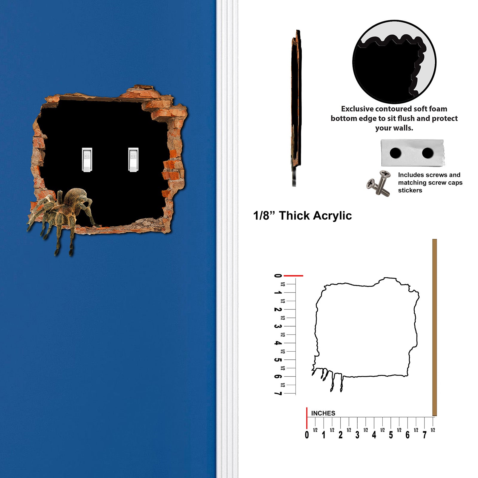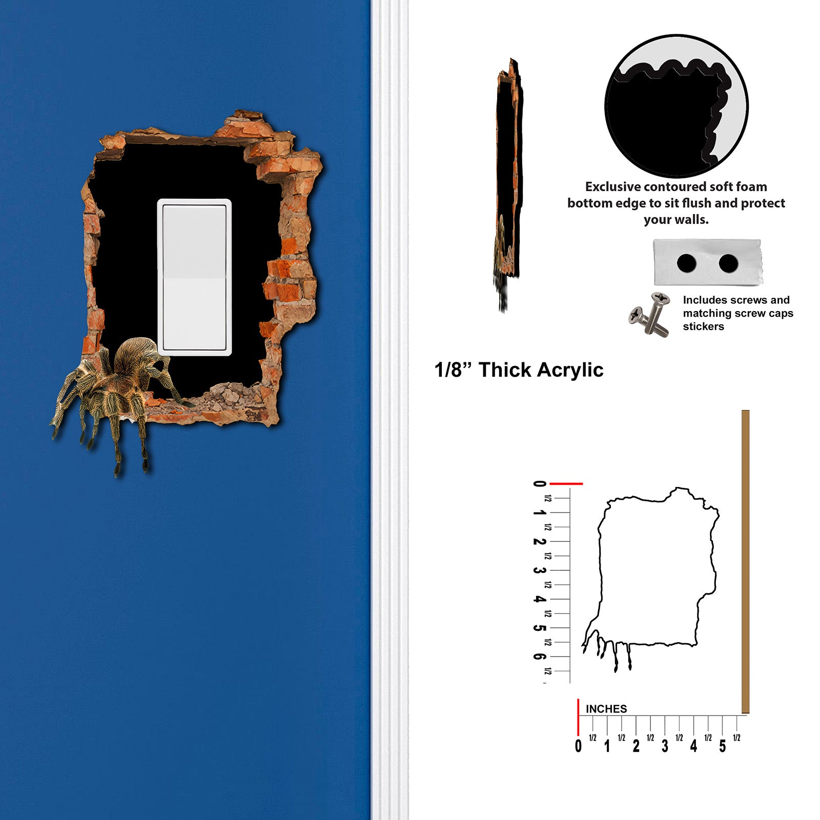 OFF THE WALL PLATES are available for standard switches, outlets and paddle designs as well as blank covers in single, double and triple gang styles (# of switch/outlet slots). Each cover is made of 1/8” laser cut acrylic and features an exclusive 3mm soft foam base that sits flush to the wall and helps protect against scratches or damage.